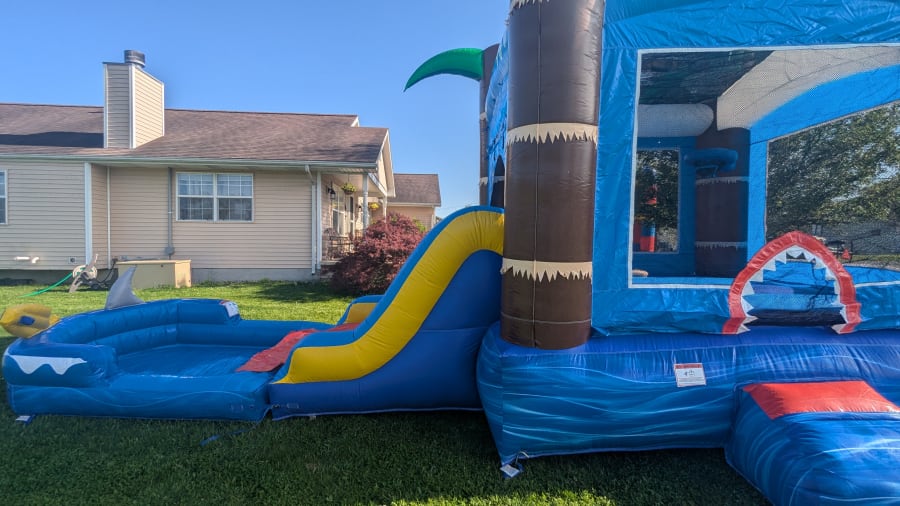 We proudly offer renting our Ocean Shark Bounce House w/ Slide in Vermilion & Champaign Counties- Fairmount, Danville, Oakwood, St. Joseph, Sidney, Savoy, Urbana, Mahomet, Rantoul & More! Our mom and son team will handle delivery, setup, and take down, so you can focus on enjoying the fun with your guests!