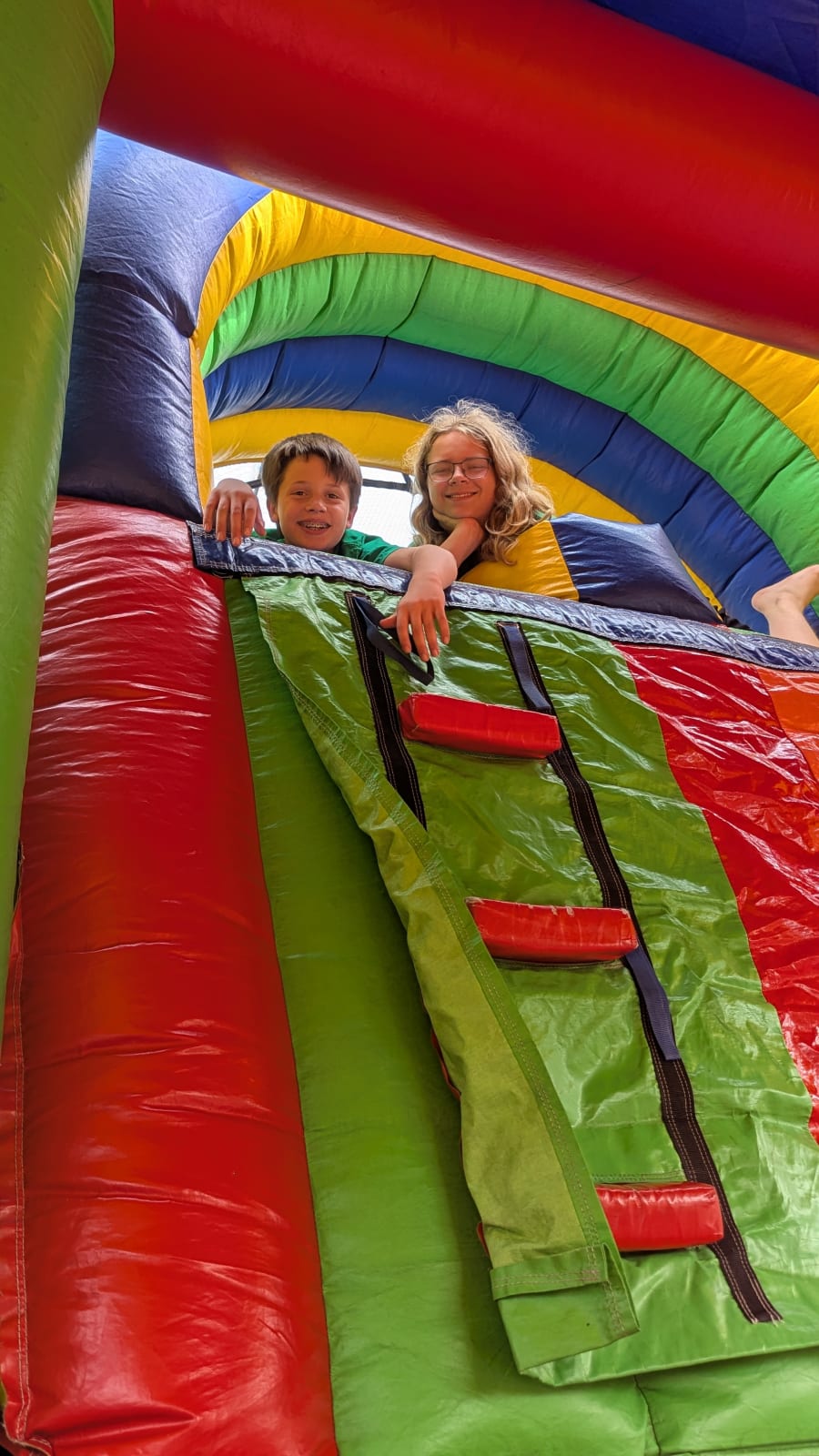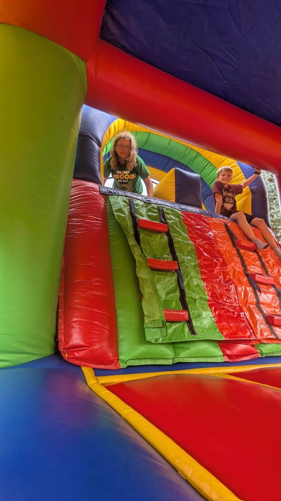 Kids climb to the top to reach the slide!
