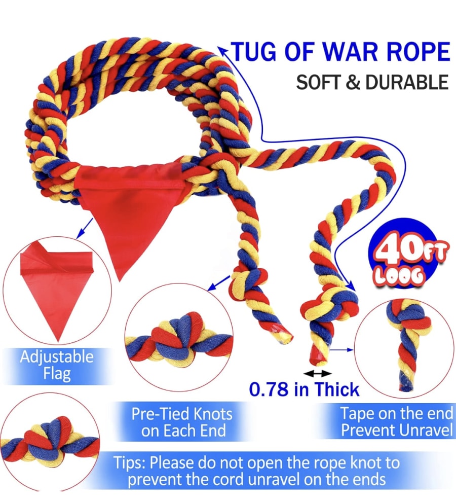 Don’t let your next gathering be ordinary—add a dose of fun, laughter, and competition with the 40ft Tug of War Rope! Book now and make your event unforgettable! 💪🤩